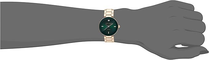 Green sunray dial with genuine diamond at 12; rose gold-tone hands and markers