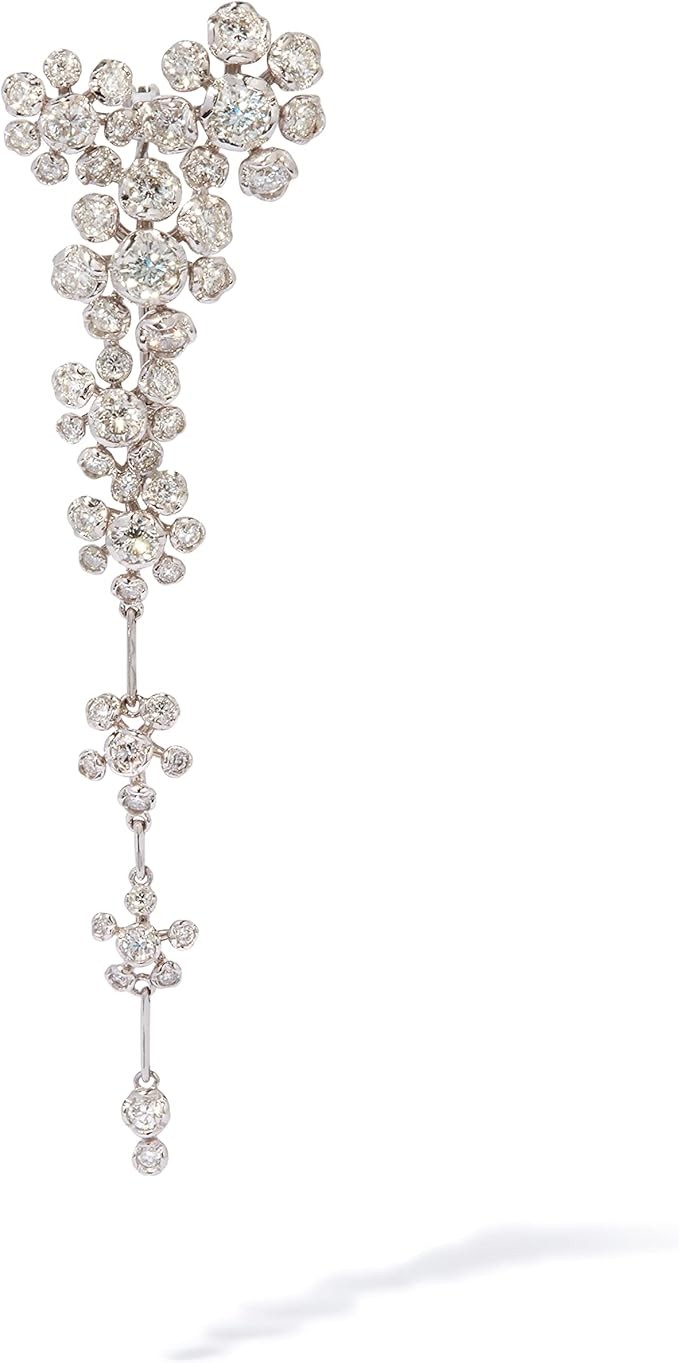 An incredible cocktail necklace hand crafted in 18ct white Gold with 101 sparkling white diamonds. With a total diamond carat weight of 5.54ct, this high polish necklace comes with a fish hook clasp and detachable drop and brooch. Amp up the glamour and wear the cascading brooch or remove for a more subtle appeal. Style with matching Marguerite diamond earrings and ring stacks to complement your look. Inspired by the quintessential British countryside in Summer, Marguerite speaks of Annoushka's love of untamed meadows and distinctive rural hedgerows, bursting with flora and fauna. There is only one of this necklace available.