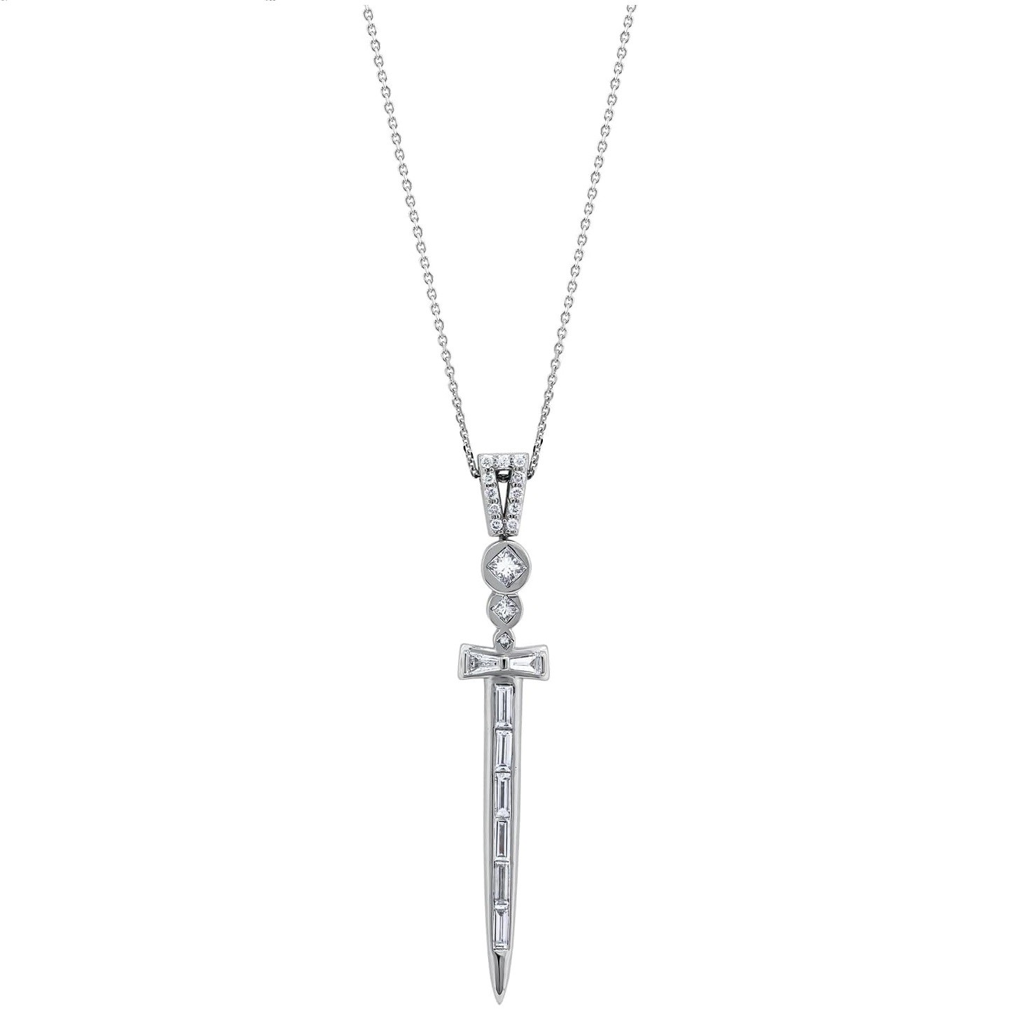 Bee Goddess Sword Full Baguette Diamond Necklace