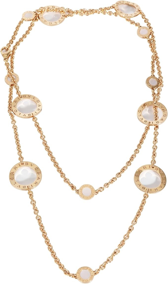 Bulgari looks to its heritage to create the Bulgari Bulgari collection. Engraved with logo lettering to echo ancient Roman typography, the designs are intended to work in harmony with each other. Retails for 14500 USD. In excellent condition. 38 in in length. Comes with Box.