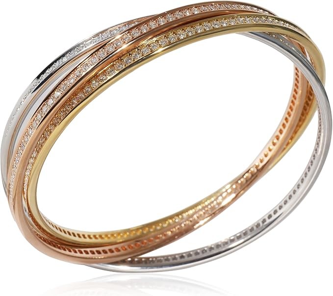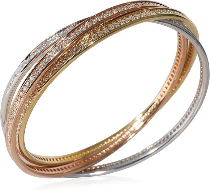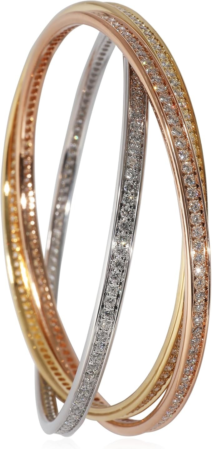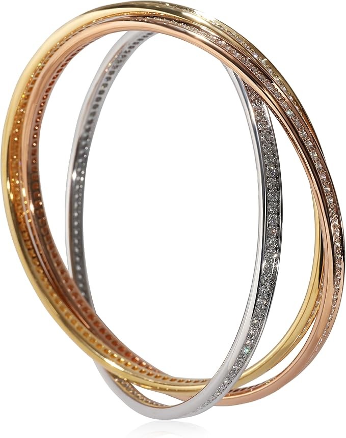 Louis Cartier, the founder's grandson, introduced the Trinity ring in 1924. The ring is characterised by its three-band construction, intertwined to create an eternity effect. The collection has since expanded to include necklaces, bracelets and earrings. Retails for 57500 USD. In excellent condition and recently polished. 7.5 in in length. Comes with Pouch; Service Papers.