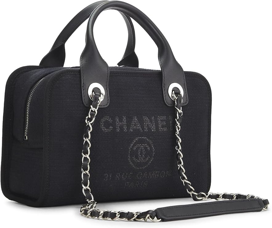 CHANEL Pre-Loved Black Canvas Deauville Bowler, Black