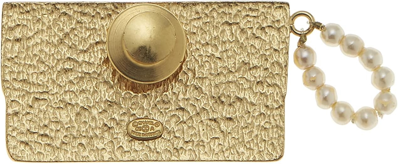 CHANEL Pre-Loved Black & Faux Pearl Flap Bag Pin, Black