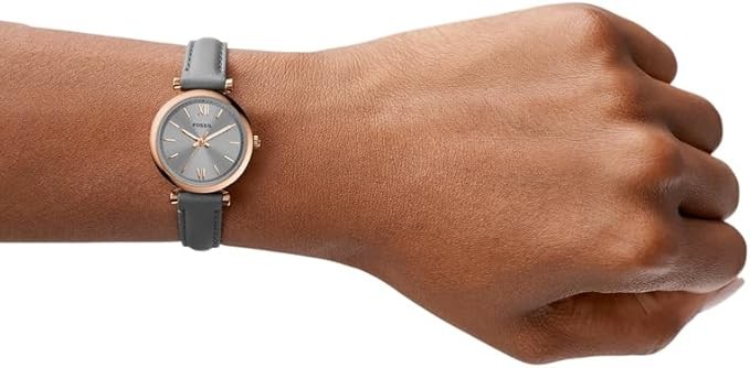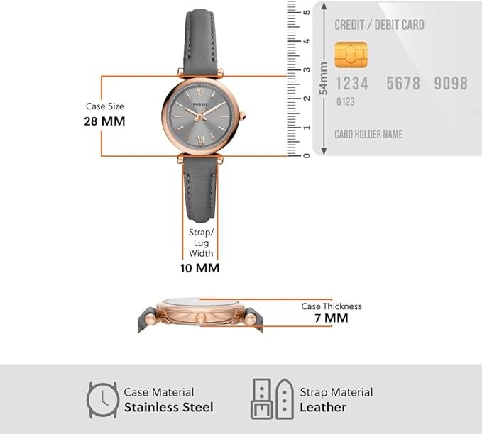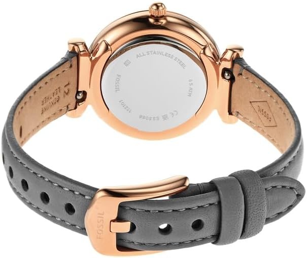 Watch Band: Gray, genuine leather band with a secure adjustable buckle closure for a customized fit; interchangeable with all 12mm Fossil straps.