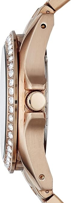 Dial: Round rose gold stainless steel case, with a rose gold textured dial and glitz accents.