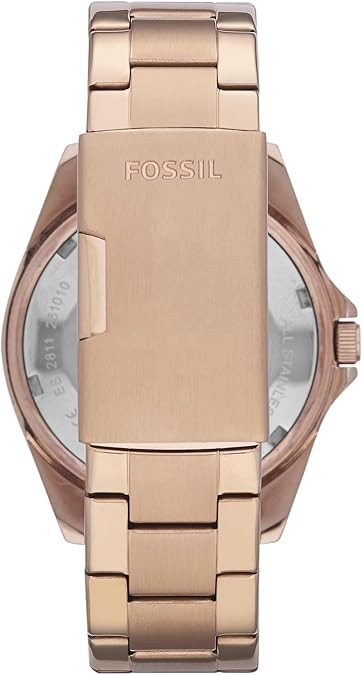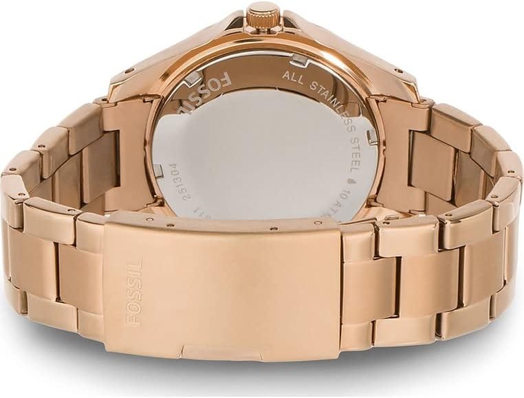 Watch Band: Rose gold, durable stainless steel bracelet band with a secure fold-over clasp closure; links can be removed for a customized fit.