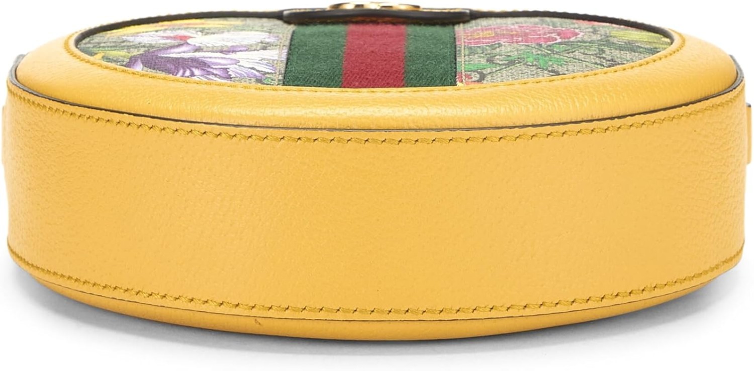 Gucci Pre-Loved Yellow GG Supreme Canvas Flora Ophidia Round Shoulder Mini, Yellow