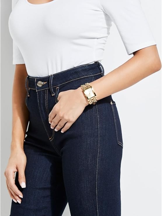 GOLD-TONE STAINLESS STEEL CHAIN BRACELET WITH SELF-ADJUSTABLE LINKS