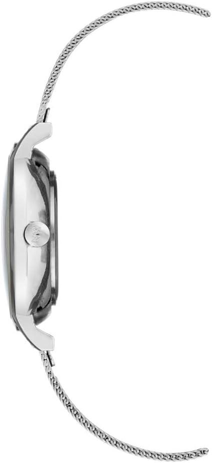 Slightly domed mineral crystal lens; silver-tone dial with matching hands and markers
