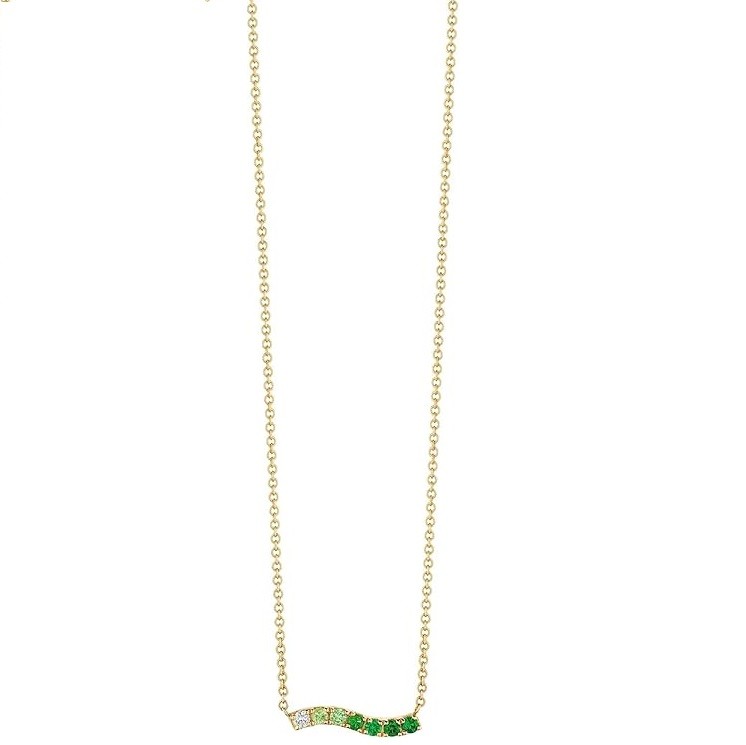 Proudly made from recycled gold, this staple necklace features a wavy bar pendant encrusted with glittering diamonds, suspended from a fine cable chain. Proudly made from recycled gold.