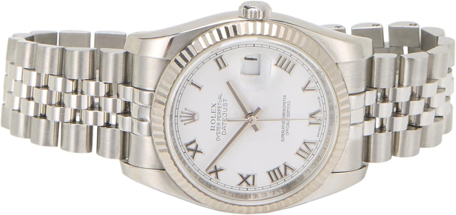 Rolex Pre-Loved 18K White Gold & Stainless Steel Roman Datejust 116234 36mm, White