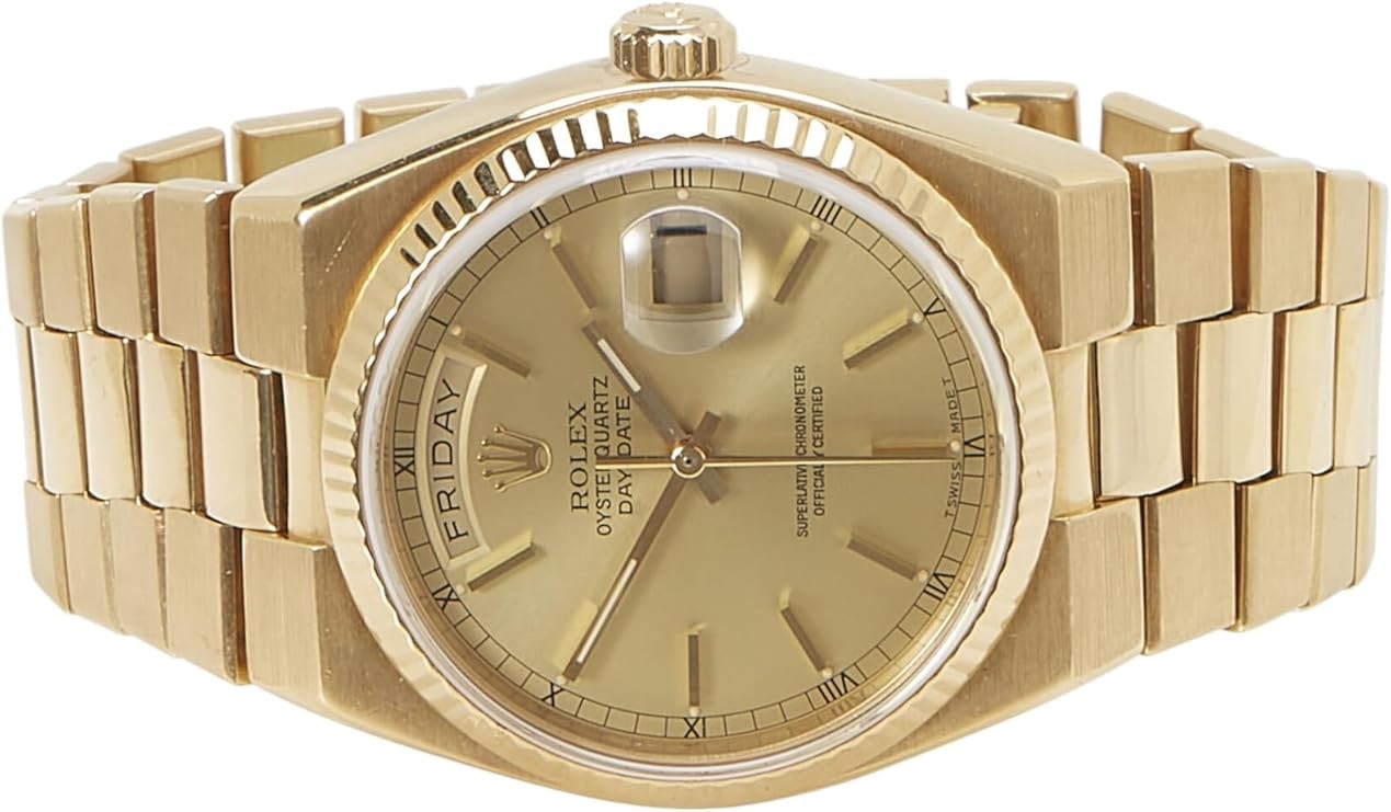 Rolex Pre-Loved 18K Yellow Gold Oyster Quartz Day-Date 19018 36mm, Gold
