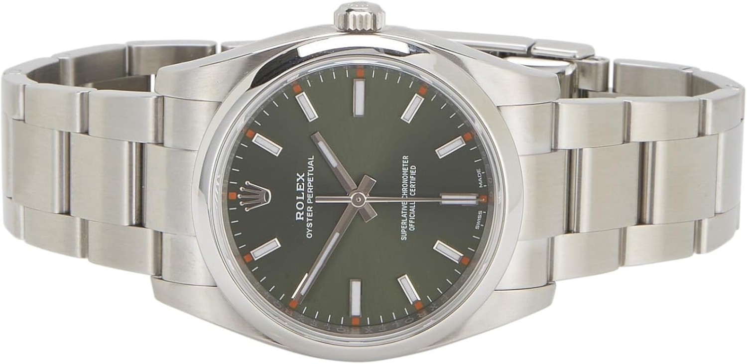 Rolex Pre-Loved Stainless Steel & Olive Green Oyster Perpetual 114200 34mm, Green