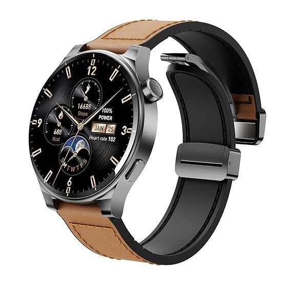 TOZO S5 Smart Watch (Answer/Make Calls), 1.43’’ AMOLED Smart Watches for Men Women 100+ Sport Modes Fitness Watch with Blood Oxygen/Sleep/Heart Rate Monitor, IP68 Waterproof Smartwatch, Leather Band