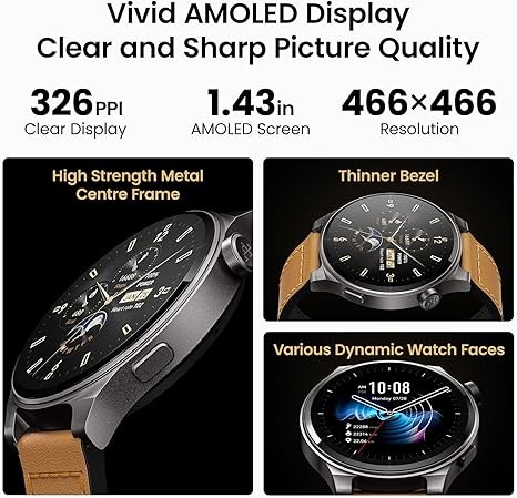 [1.43''HD Touch AMOLED Screen] TOZO is committed to bringing consumers better products. We have gone through thousands of tests and research on this newly developed TOZO S5 smart watch, and finally decided to use a 1.43" ultra-high-definition AMOLED screen. Compared with the traditional LCD panel , AMOLED has low energy consumption, the panel emits light independently, make it richer and brighter, and the screen can be clearly seen outdoors during the day.