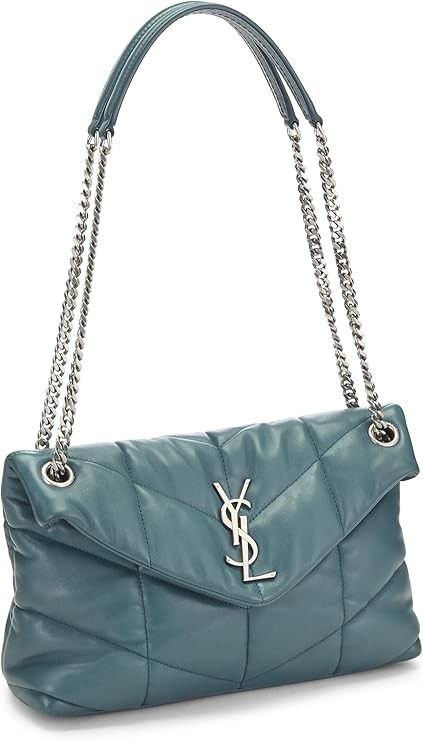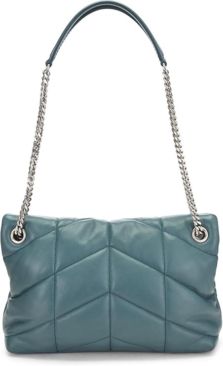 YVES SAINT LAURENT Pre-Loved Blue Calfskin Puffer Chain Shoulder Bag Small, Blue
