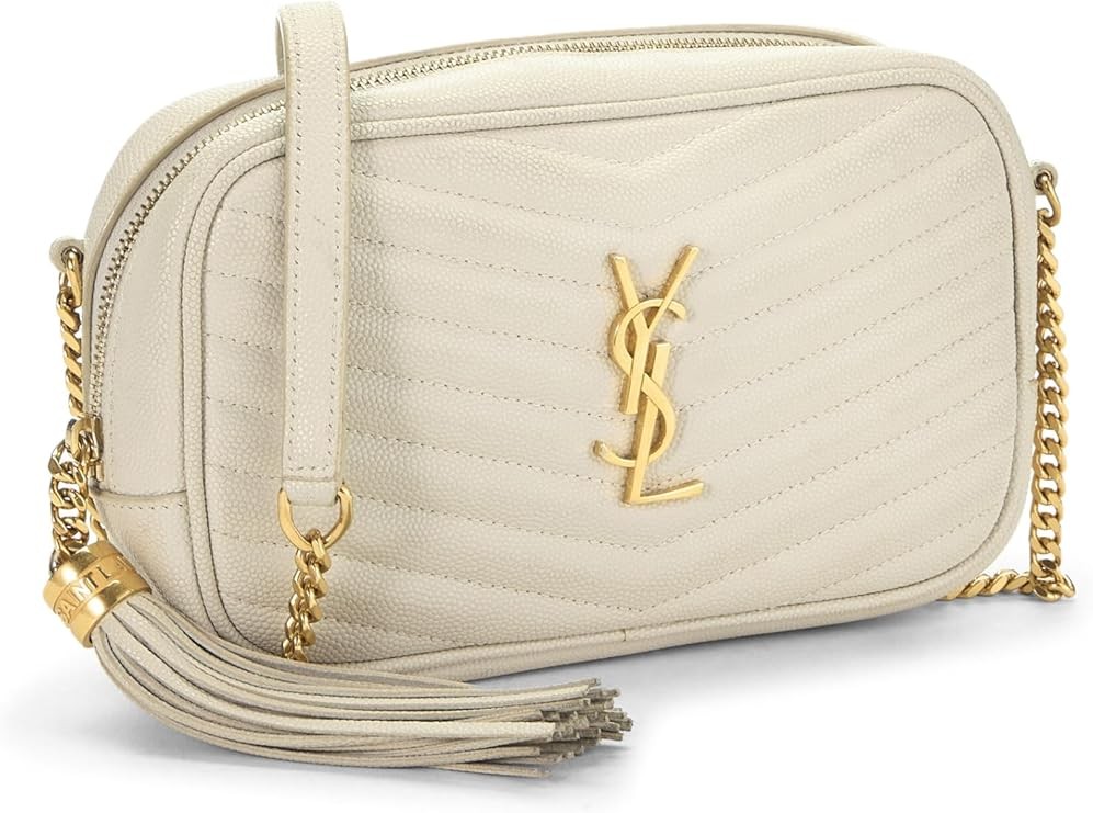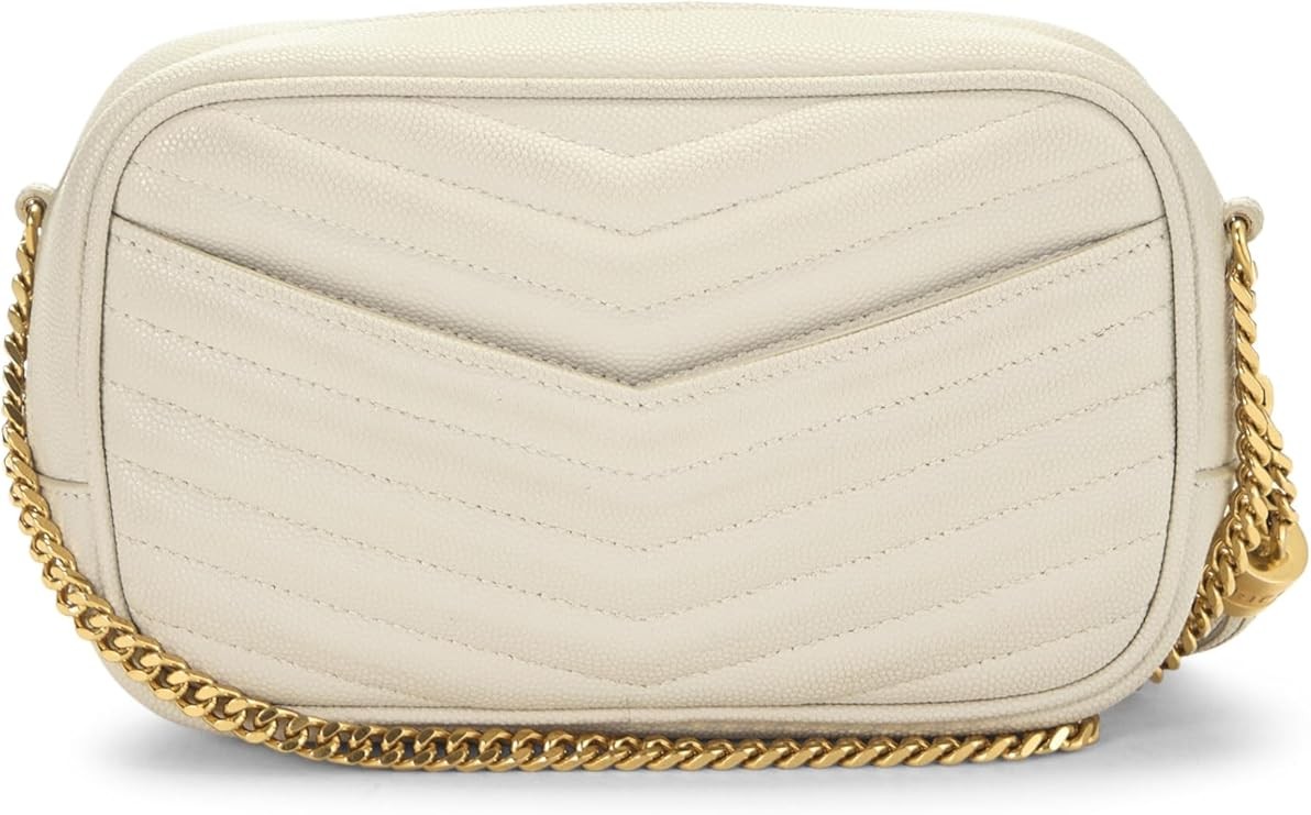 YVES SAINT LAURENT Pre-Loved Cream Grainy Leather Lou Camera Bag Mini, White